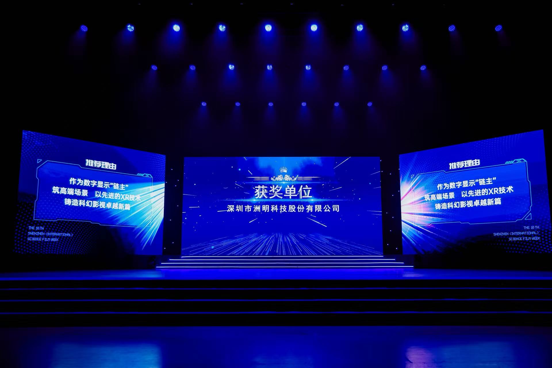11月14日,第十届深圳(国际)科技影视周暨第三届科幻影视工业大赛在深圳隆重举行。本届活动以科技驱动影视创新为核心,汇聚国内外众多科技企业、影视机构及创作者,共同呈现中国科幻影视工业化体系的加速发展成果。作为国内领先的光显科技企业,洲明科技以创新技术实力闪耀本届活动,并斩获重要荣誉。