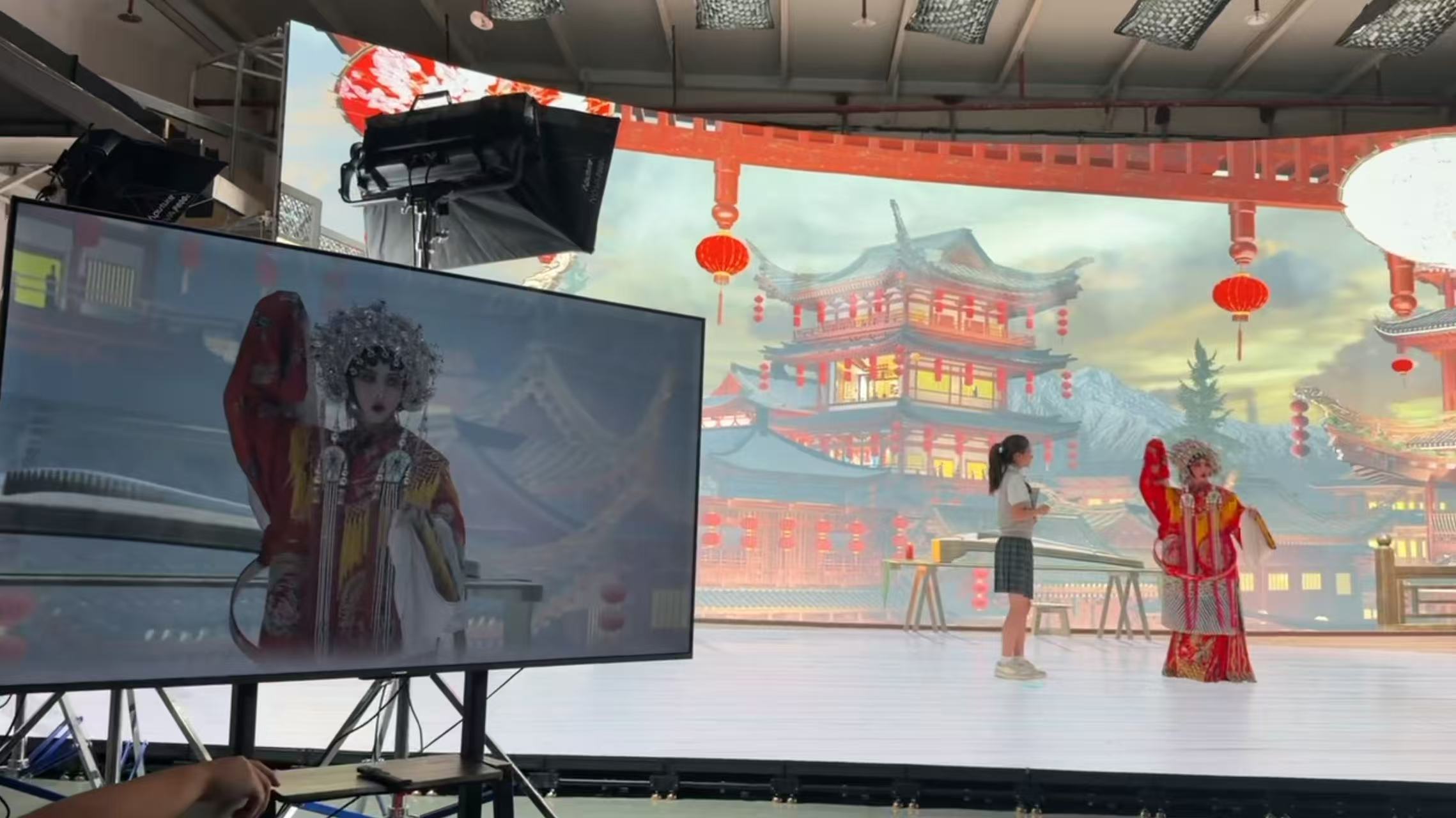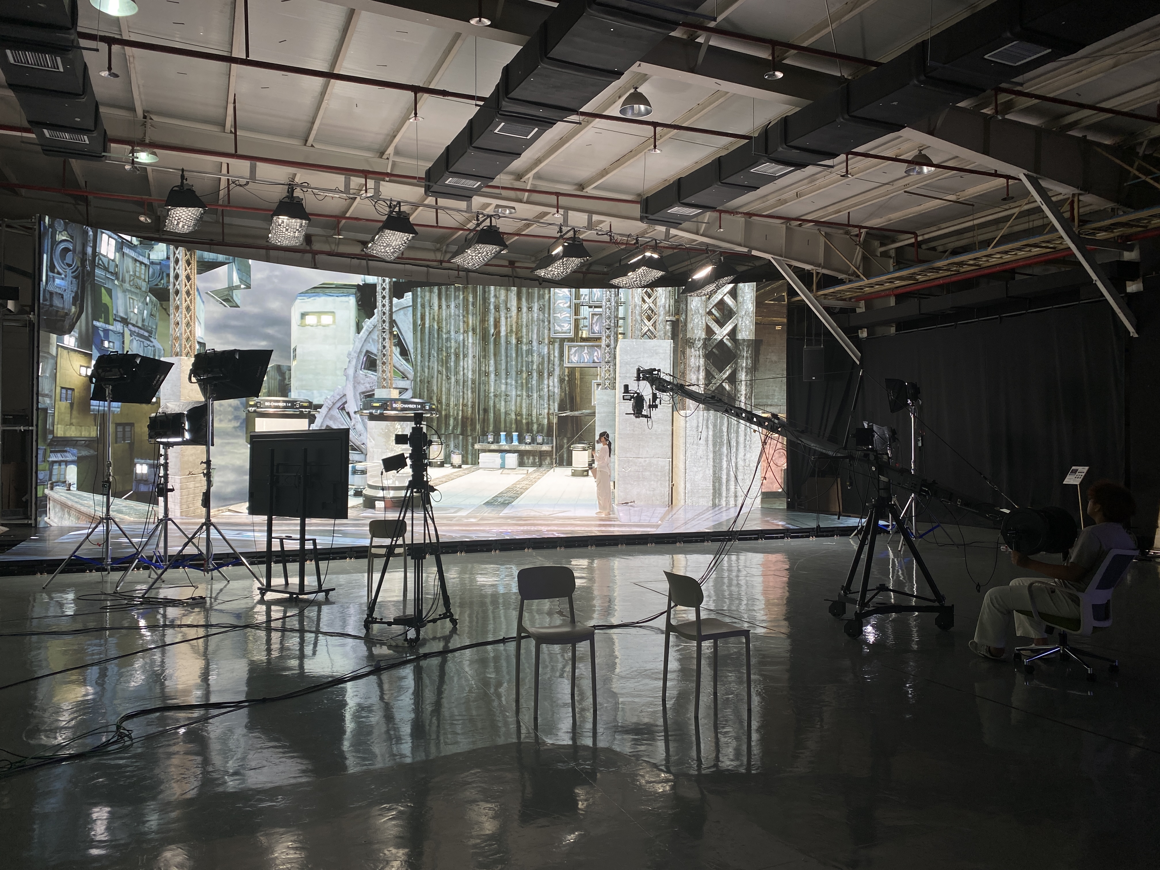 赛事期间,洲明科技向参赛团队开放位于深圳福永的XR虚拟制片影棚。影棚总占地面积约800平方米,其中LED显示屏拍摄区域达160平方米,集成了LED显示系统、虚拟拍摄服务器、专业摄影系统、高精度追踪系统、影视级灯光及现场录制系统,构成一个完整、稳定的虚拟制作技术闭环。